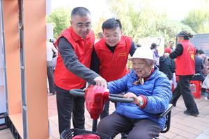 (251029) -- BEIJING, 29 octubre, 2025 (Xinhua) -- Un anciano prueba un scooter de movilidad eléctrica bajo la guía de voluntarios en un evento para celebrar el Festival Chongyang, en la ciudad de Rugao, en la provincia de Jiangsu, en el este de China, el 29 de octubre de 2025. Una serie de actividades se llevaron a cabo en todo el país con motivo del Festival Chongyang, también conocido como el Día de los Ancianos en China, que honra las virtudes tradicionales del país de piedad filial y amor familiar. (Xinhua/Qiu Yu) (jg) (da) (ce)