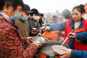 (260126) -- BEIJING, 26 enero, 2026 (Xinhua) -- Empleados de una empresa reparten gratis gachas de Laba a los aldeanos, en la ciudad de Qinyang, en la provincia de Henan, en el centro de China, el 26 de enero de 2026. El Festival de Laba, que se celebra cada año el octavo día del duodécimo mes lunar con la costumbre de comer gachas de Laba, cae el lunes este año. (Xinhua/Zhang Xinyu) (oa) (ah) (vf)