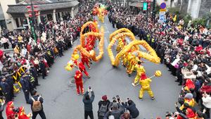 (260302) -- BEIJING, 2 marzo, 2026 (Xinhua) -- Vista aérea tomada con un dron el 28 de febrero de 2026 de equipos de la danza del dragón marchando durante un desfile, en el distrito de Deqing de Huzhou, en la provincia de Zhejiang, en el este de China. Varias actividades se llevaron a cabo en toda China para celebrar el Festival de Linternas que cae el decimoquinto día del primer mes del calendario lunar chino, o el 3 de marzo de este año. (Xinhua/Xie Shangguo) (ah) (rtg) (ce)