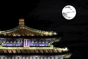 (251006) -- BEIJING, 6 octubre, 2025 (Xinhua) -- La luna llena es vista cerca del parque Jingshan, en Beijing, capital de China, el 6 de octubre de 2025. El lunes se celebra el Festival del Medio Otoño de este año, que tiene lugar cada año el decimoquinto día del octavo mes del calendario lunar chino. Personas de toda China admiran la luna llena para celebrar esta festividad tradicional. (Xinhua/Liu Jinhai) (oa) (ah) (vf)