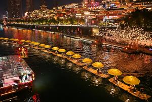 (250406) -- BEIJING, 6 abril, 2025 (Xinhua) -- Imagen del 5 de abril de 2025 de personas realizando paseos en balsa de bambú para hacer turismo nocturno en el río Gongshui, en el distrito de Xuan'en, en la provincia de Hubei, en el centro de China. El Festival Qingming, o Día de Limpieza de Tumbas, cayó el 4 de abril este año. Es un festival chino tradicional durante el cual las personas rinden homenaje a los muertos y veneran a sus ancestros. El festival también ofrece un breve descanso para que los residentes chinos lo dediquen a actividades al aire libre y al turismo. (Xinhua/Song Wen) (oa) (da)
