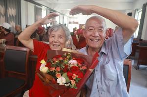 (250829) -- BEIJING, 29 agosto, 2025 (Xinhua) -- Una pareja de 50 años de casados posa durante un evento del Festival Qixi en una comunidad, en el distrito de Lanshan de la ciudad de Linyi, en la provincia de Shandong, en el este de China, el 29 de agosto de 2025. Personas a lo largo del país festejaron el Festival Qixi o el Día de San Valentín chino el viernes. (Xinhua/Xu Chuanbao) (rtg) (ra) (vf)