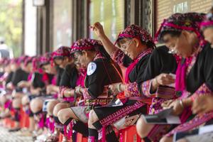 (260419) -- BEIJING, 19 abril, 2026 (Xinhua) -- Mujeres participan en un concurso de bordado miao durante un evento en celebración del Festival Sanyuesan, en Qionghai, en la provincia de Hainan, en el sur de China, el 19 de abril de 2026. El Festival Sanyuesan, es un festival tradicional celebrado el tercer día del tercer mes lunar por varios grupos étnicos en China, que este año cae el 19 de abril. (Xinhua/Meng Zhongde) (oa) (da)