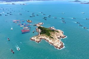 (250816) — FUZHOU, 16 agosto, 2025 (Xinhua) — Vista aérea tomada con un dron el 16 de agosto de 2025 de botes pesqueros zarpando de un puerto pesquero tras el fin de la prohibición de pesca estacional, en el distrito de Lianjiang de Fuzhou, en la provincia de Fujian, en el sureste de China. (Xinhua/Wang Wangwang) (oa) (ra) (ce)