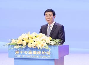 (250615) -- XIAMEN, 15 junio, 2025 (Xinhua) -- Wang Huning, miembro del Comité Permanente del Buró Político del Comité Central del Partido Comunista de China y presidente del Comité Nacional de la Conferencia Consultiva Política del Pueblo Chino, se dirige al XVII Foro del Estrecho, en Xiamen, en la provincia de Fujian, en el suroeste de China, el 15 de junio de 2025. (Xinhua/Yao Dawei) (rtg) (da)
