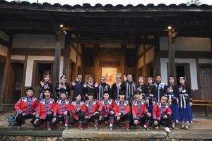 (250222) -- XIAPU, 22 febrero, 2025 (Xinhua) -- Imagen del 20 de febrero de 2025 de artistas tomándose una fotografía grupal con invitados italianos, en la aldea de Banyueli del poblado de Xinan, en el distrito de Xiapu, en la provincia de Fujian, en el sureste de China. Una delegación de Cerdeña, Italia, visitó la aldea el jueves, experimentando la cultura y las costumbres únicas del grupo étnico she. (Xinhua/Jiang Kehong) (jg) (da)