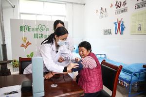 (250928) -- ZHANGXIAN, 28 septiembre, 2025 (Xinhua) -- Empleados médicos miden la presión sanguínea de una residente afectada por el sismo, en un sitio de reubicación, en el distrito de Zhangxian, en la ciudad de Dingxi, en la provincia de Gansu, en el noroeste de China, el 28 de septiembre de 2025. Un sismo de magnitud 5,6 sacudió el distrito de Longxi, en la ciudad de Dingxi, a las 05:49 del sábado. El sismo se sintió con fuerza en los distritos de Longxi, Zhangxian, Weiyuan y Lintao, en la ciudad de Dingxi, así como en el distrito de Wushan, en la ciudad de Tianshui. Actualmente, los residentes afectados han sido reubicados y alojados rápidamente y los trabajos de limpieza y eliminación de riesgos en las carreteras y casas dañadas están en marcha de manera ordenada. (Xinhua/Lang Bingbing) (rtg) (ah)