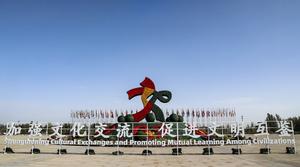 (250921) -- DUNHUANG, 21 septiembre, 2025 (Xinhua) -- Imagen del 21 de septiembre de 2025 del lema de la VIII Exposición Cultural Internacional de la Ruta de la Seda (Dunhuang), en Dunhuang, en la provincia de Gansu, en el noroeste de China. Más de 1.200 representantes de 97 países y ocho organizaciones internacionales se reunieron en la VIII Exposición Cultural Internacional de la Ruta de la Seda (Dunhuang), que comenzó el domingo en Dunhuang, un centro clave de la antigua Ruta de la Seda en el noroeste de China. (Xinhua/Lang Bingbing) (rtg) (ah)