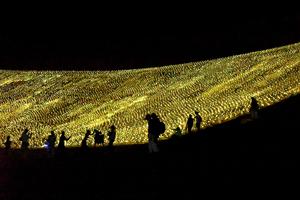 CHINA-GANSU-DUNHUANG-MONTAÑA MINGSHA-LUCES