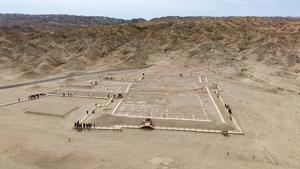 (250501) -- DUNHUANG, 1 mayo, 2025 (Xinhua) -- Imagen tomada con un dron el 29 de abril de 2025 de invitados visitando las ruinas de Xuanquanzhi, en Dunhuang, en la provincia de Gansu, en el noroeste de China. Dos importantes sitios arqueológicos situados a lo largo de la antigua Ruta de la Seda abrieron al público en el noroeste de China el jueves, el primer día de las vacaciones del Primero de Mayo, ofreciendo nuevas opciones para los viajeros interesados en explorar los intercambios entre las civilizaciones Oriental y Occidental hace más de un milenio. (Xinhua/Lang Bingbing) (jg) (ah) (ce)