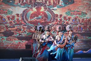 (250501) -- DUNHUANG, 1 mayo, 2025 (Xinhua) -- Imagen del 29 de abril de 2025 de artistas bailando en la ceremonia de apertura de las ruinas de Xuanquanzhi, en Dunhuang, en la provincia de Gansu, en el noroeste de China. Dos importantes sitios arqueológicos situados a lo largo de la antigua Ruta de la Seda abrieron al público en el noroeste de China el jueves, el primer día de las vacaciones del Primero de Mayo, ofreciendo nuevas opciones para los viajeros interesados en explorar los intercambios entre las civilizaciones Oriental y Occidental hace más de un milenio. (Xinhua/Zhang Xiaoliang) (jg) (ah) (ce)