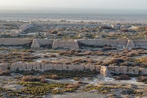 (251119) — GUAZHOU, 19 noviembre, 2025 (Xinhua) — Imagen tomada con un dron el 18 de noviembre de 2025 del sitio de la ciudad de Suoyang, en el distrito de Guazhou, en la ciudad de Jiuquan, en la provincia de Gansu, en el noroeste de China. Ubicadas en el desierto de Gobi, en el sureste de la actual ciudad de Suoyang, las ruinas de la ciudad de Suoyang, que antiguamente desempeñaba un papel fundamental en la defensa fronteriza y el transporte, comprenden el sitio de la ciudad de Suoyang, el templo Ta’er, los restos de un sistema de canales de riego y un conjunto de tumbas. (Xinhua/Lang Bingbing) (jg) (da) (ce)