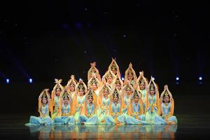 (260108) -- LANZHOU, 8 enero, 2026 (Xinhua) -- Imagen del 7 de enero de 2026 de actrices del centro cultural de la ciudad de Jiuquan de Gansu realizando la danza de Dunhuang durante el primer espectáculo de un evento cultural masivo de presentación y difusión llevado a cabo en la Sala de Conciertos de Lanzhou, en Lanzhou, en la provincia de Gansu, en el noroeste de China. El evento cultural masivo de presentación y difusión, que prevé organizar 240 espectáculos culturales masivos a lo largo del año, tiene como objetivo construir escenarios culturales y artísticos para el público en general a sus puertas. (Xinhua/Chen Bin) (jg) (ra) (vf)