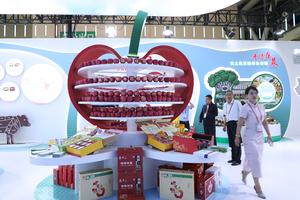 (250706) -- LANZHOU, 6 julio, 2025 (Xinhua) -- Personas visitan un estand para promover manzanas producidas en el distrito de Jingning de Gansu, durante la 31ª Feria de Inversiones y Comercio de Lanzhou de China, en Lanzhou, en la provincia de Gansu, en el noroeste de China, el 6 de julio de 2025. Celebrada por primera vez en 1993, la Feria de Inversiones y Comercio de Lanzhou de China, sirve como una ventana para la apertura del noroeste de China y es un evento importante para la cooperación económica y comercial de la Franja y la Ruta. (Xinhua/Zhang Zhimin) (rtg) (da)