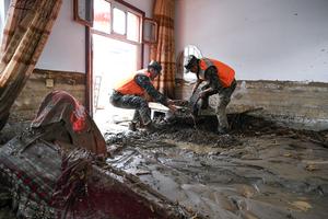 (250809) -- YUZHONG, 9 agosto, 2025 (Xinhua) -- Rescatistas retiran escombros del interior de una habitación de aldeanos afectados por el desastre, en el poblado de Chengguan del condado Yuzhong, en la ciudad de Lanzhou, en la provincia de Gansu, en el noroeste de China, el 9 de agosto de 2025. Las labores de rescate siguen en marcha luego de que lluvias fuertes y continuas provocaran torrentes de montaña en el condado de Yuzhong. (Xinhua/Hou Chonghui) (oa) (da)