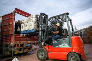 (250811) — YUZHONG, 11 agosto, 2025 (Xinhua) — Imagen del 10 de agosto de 2025 de trabajadores cargando suministros de ayuda a desastres en un vehículo en un centro de servicio de reserva de suministros de ayuda a desastres, en el distrito de Yuzhong, en la ciudad de Lanzhou, en la provincia de Gansu, en el noroeste de China. A medida que gradualmente se restauran las carreteras dañadas por los torrentes de montaña en el distrito de Yuzhong, continúa el transporte de suministros de ayuda. (Xinhua/Lang Bingbing) (rtg) (ah) (vf)