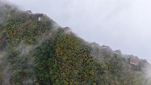 (251017) -- BEIJING, 17 octubre, 2025 (Xinhua) -- Vista aérea tomada con un dron el 17 de octubre de 2025 de la sección Simatai de la Gran Muralla, en Beijing, capital de China. (Xinhua/Zhou Wanping) (jg) (da) (ce)