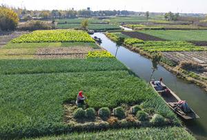(251206) -- BEIJING, 6 diciembre, 2025 (Xinhua) -- Vista aérea tomada con un dron el 6 de diciembre de 2025 de un agricultor cosechando cebollino, en la ciudad de Xinghua, en la provincia de Jiangsu, en el este de China. A medida que se acerca el término solar de la Gran Nevada, también conocido como "Da Xue" en chino, los agricultores están atareados con la producción agrícola en todo el país. (Xinhua/Zhou Shegen) (jg) (da)