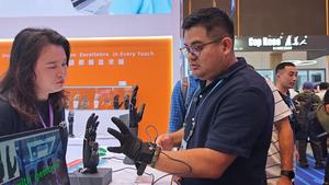 (251023) -- GUANGZHOU, 23 octubre, 2025 (Xinhua) -- Imagen del 15 de octubre de 2025 de Daniel Chuquimango (d), operando una mano biónica en la sección de robots de servicio de la 138 Feria de Cantón, en Guangzhou, en la provincia de Guangdong, en el sur de China. Daniel Chuquimango, originario de la ciudad peruana de Cajamarca, ha pasado de ser un estudiante de biotecnología a un profesional de comercio exterior, y de ser un "principiante" en chino a un "puente de doble vía" para el comercio sino-peruano. Daniel utiliza su propia experiencia personal para ilustrar la profunda connotación de la Iniciativa de la Franja y la Ruta, es decir, "conectividad entre personas y comercio sin obstáculos". (Xinhua/Wu Jiawei) (jg) (ah) (ce)