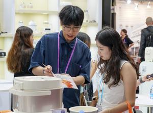 (251019) -- GUANGZHOU, 19 octubre, 2025 (Xinhua) -- Imagen del 16 de octubre de 2025 de un expositor presentando productos de electrodomésticos a una compradora en el estand de Bear Electric Appliance durante la 138ª edición de la Feria de Importación y Exportación de China, en Guangzhou, en la provincia de Guangdong, en el sur de China. La primera fase de la 138ª edición de la Feria de Importación y Exportación de China, también conocida como la Feria de Cantón, concluyó el domingo. Según estadísticas del Centro de Comercio Exterior de China, cerca de 157.900 compradores extranjeros de 222 países y regiones asistieron al evento presencial. (Xinhua/Xiao Ennan) (da) (ah)