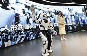 (250409) -- SHENZHEN, 9 abril, 2025 (Xinhua) -- Imagen del 26 de marzo de 2025 de una trabajadora presentando un robot en la empresa de tecnología UBTECH, en Shenzhen, en la provincia de Guangdong, en el sur de China. La producción de robots industriales de Guangdong superó las 240.000 unidades en 2024 con un aumento interanual del 31,2 por ciento, ocupando el primer lugar en el país durante cinco años consecutivos, según el Departamento de Industria y Tecnología de la Información de la provincia de Guangdong. (Xinhua/Liu Yongzhen) (ah) (ra) (ce)