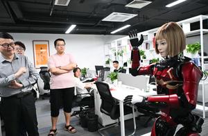 (250409) -- SHENZHEN, 9 abril, 2025 (Xinhua) -- Imagen del 27 de marzo de 2025 de un robot humanoide interactuando con personas en la empresa de tecnología DIGIT, en Shenzhen, en la provincia de Guangdong, en el sur de China. La producción de robots industriales de Guangdong superó las 240.000 unidades en 2024 con un aumento interanual del 31,2 por ciento, ocupando el primer lugar en el país durante cinco años consecutivos, según el Departamento de Industria y Tecnología de la Información de la provincia de Guangdong. (Xinhua/Deng Hua) (ah) (ra) (ce)