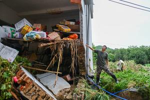 (250806) -- ZHAOQING, 6 agosto, 2025 (Xinhua) -- Un aldeano jefe del Partido revisa una vivienda dañada por las inundaciones, en la aldea de Huanghua de la ciudad de Qingyuan, en la provincia de Guangdong, en el sur de China, el 6 de agosto de 2025. La Comisión Nacional para la Prevención, la Reducción y el Alivio de Desastres de China activó el miércoles una respuesta de emergencia de nivel IV en la provincia meridional de Guangdong, debido a las fuertes lluvias y graves inundaciones, según el Ministerio de Gestión de Emergencias. (Xinhua/Xiao Ennan) (ah) (ra) (ce)
