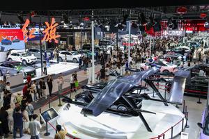 (250531) -- SHENZHEN, 31 mayo, 2025 (Xinhua) -- Un automóvil volador de Hongqi es exhibido en el Salón Internacional del Automóvil de la Gran Area de la Bahía de Guangdong-Hong Kong-Macao 2025, en Shenzhen, en la provincia de Guangdong, en el sur de China, el 31 de mayo de 2025. (Xinhua/Liang Xu) (jg) (da)