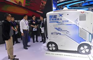 (250920) -- NANNING, 20 septiembre, 2025 (Xinhua) -- Imagen del 19 de septiembre de 2025 de personas observando un robot de carga inteligente durante la 22ª Exposición China-ASEAN, en Nanning, en la región autónoma de la etnia zhuang de Guangxi, en el sur de China. En la 22ª Exposición China-ASEAN en curso, los vehículos de nueva energía producidos en Liuzhou de Guangxi, y potenciados con inteligencia artificial atraen amplia atención tanto de empresas como de visitantes nacionales y extranjeros. (Xinhua/Lu Boan) (oa) (ra) (ce)