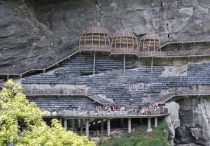 (250810) -- LIUZHOU, 10 agosto, 2025 (Xinhua) -- Imagen del 9 de agosto de 2025 de personas visitando una librería en el acantilado en un punto escénico, en el distrito autónomo mulao de Luocheng, en la ciudad de Hechi, en la región autónoma zhuang de Guangxi, en el sur de China. La librería en el acantilado fue inaugurada en mayo de este año y ha registrado 100.000 visitas hasta ahora por su diseño arquitectónico único y experiencia de lectura. (Xinhua/Long Tao) (rtg) (da)