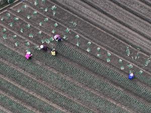 (251112) — LIUZHOU, 12 noviembre, 2025 (Xinhua) — Vista aérea tomada con un dron el 11 de noviembre de 2025 de aldeanos plantando cebollinos, en la aldea de Longxing del poblado de Sandu, en la ciudad de Liuzhou, en la región autónoma de la etnia zhuang de Guangxi, en el sur de China. En los últimos años, el poblado de Sandu ha promovido la producción estandarizada e industrializada de cebollino y ha desarrollado un sistema empresarial integrado que abarca desde la siembra y el procesamiento hasta las ventas y el servicio. (Xinhua/Huang Xiaobang) (ah) (ra) (ce)