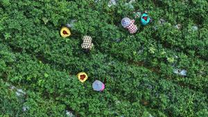 (250612) -- QINZHOU, 12 junio, 2025 (Xinhua) -- Vista aérea tomada con un dron el 12 de junio de 2025 de agricultoras cosechando chiles, en la aldea de Youbu, en el distrito de Qinnan, en la ciudad de Qinzhou, en la región autónoma zhuang de Guangxi, en el sur de China. (Xinhua/Zhang Ailin) (jg) (da) (ce)