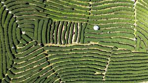 (260314) -- GUANGXI, 14 marzo, 2026 (Xinhua) -- Vista aérea tomada con un dron el 12 de marzo de 2026 de un jardín de té, en el distrito autónomo dong de Sanjiang, en la región autónoma zhuang de Guangxi, en el sur de China. Mientras la temporada de recolección de té de primavera comienza, las fábricas de té y los agricultores se encuentran ocupados cosechando hojas de té, en el distrito autónomo dong de Sanjiang. (Xinhua/Zhang Ailin) (rtg) (ra) (da)