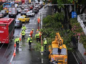 (260330) -- GUANGZHOU, 30 marzo, 2026 (Xinhua) -- Empleados retiran árboles caídos de una calle, en Guangzhou, en la provincia de Guangdong, en el sur de China, el 30 de marzo de 2026. Fenómenos convectivos severos se produjeron el lunes en Guangzhou. (Xinhua/Deng Hua) (oa) (ah) (vf)