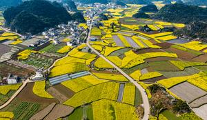 (250323) -- LIUPANSHUI, 23 marzo, 2025 (Xinhua) -- Vista aérea tomada con un dron el 22 de marzo de 2025 de flores de colza, en la aldea de Wayao del poblado de Mugang, en la ciudad de Liupanshui, en la provincia de Guizhou, en el suroeste de China. Más de 1.000 hectáreas de flores de colza están en plena floración en Mugang. (Xinhua/Tao Liang) (oa) (ah)