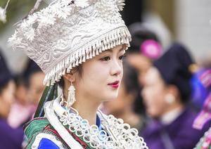 (250412) -- TAIJIANG, 12 abril, 2025 (Xinhua) -- Una mujer porta un traje étnico mientras asiste a una actividad para celebrar el Festival de las Hermanas Miao, en el distrito de Taijiang, en la provincia de Guizhou, en el suroeste de China, el 12 de abril de 2025. Reconocido como patrimonio cultural inmaterial nacional, el Festival de las Hermanas Miao se celebró aquí el sábado. (Xinhua/Tao Liang) (oa) (da)