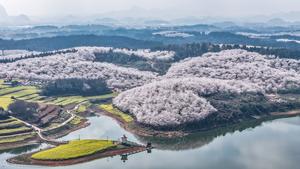 (260311) -- GUIYANG, 11 marzo, 2026 (Xinhua) -- Vista aérea tomada con un dron el 11 de marzo de 2026 de flores de cerezo, en la Nueva Area de Gui'an, en la provincia de Guizhou, en el suroeste de China. (Xinhua/Tao Liang) (jg) (da) (ce)