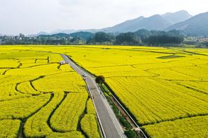 (250402) — GUIDING, 2 abril, 2025 (Xinhua) — Vista aérea tomada con un dron el 1 de abril de 2025 del paisaje de un punto escénico, en el poblado de Panjiang del distrito de Guiding, en la provincia de Guizhou, en el suroeste de China. El distrito de Guiding, con un modelo de desarrollo que integra la agricultura y el turismo, ha desarrollado vigorosamente industrias especializadas como la plantación de canola, duraznos amarillos y rosas Roxburgh en los últimos años. En la primavera, cuando las flores están en plena floración, cada vez más personas vienen al distrito, impulsando el turismo rural en sectores como el servicio de comidas, el alojamiento familiar y el transporte. (Xinhua/Yang Wenbin) (jg) (da) (vf)