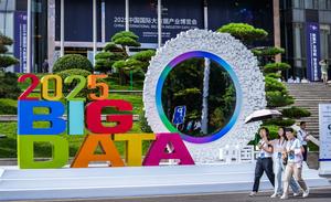 (250828) — GUIYANG, 28 agosto, 2025 (Xinhua) — Participantes caminan frente a una instalación que marca la Exposición Internacional de la Industria de Macrodatos de China 2025, en Guiyang, en la provincia de Guizhou, en el suroeste de China, el 28 de agosto de 2025. La Exposición Internacional de la Industria de Macrodatos de China 2025 se inauguró aquí el jueves. (Xinhua/Tao Liang) (da) (ra) (ce)