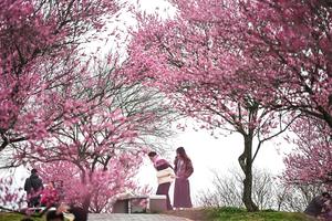 (260124) -- GUIYANG, 24 enero, 2026 (Xinhua) -- Personas visitan un jardín de flores de ciruelo, en la Nueva Area de Guian, en la provincia de Guizhou, en el suroeste de China, el 24 de enero de 2026. Con una superficie de 1.800 mu (120 hectáreas), un jardín de flores de ciruelo abrió al público el sábado en la Nueva Area de Guian, atrayendo a turistas para pasear. En lo que alguna vez fue un área ecológicamente frágil, el jardín ha plantado más de 50.000 ciruelos de flor. (Xinhua/Yang Wenbin) (oa) (da)