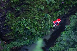 (250723) — GUIZHOU, 23 julio, 2025 (Xinhua) — Imagen del 22 de julio de 2025 de una turista jugando con un «columpio supergigante» en un sumidero gigante, en el distrito de Kaiyang, en la provincia de Guizhou, en el suroeste de China. La provincia de Guizhou es famosa por su extenso paisaje kárstico, que se distingue por sus numerosos sumideros gigantes, llamados localmente «tiankeng» o «fosas celestiales». Los sumideros naturales son cada vez más reconocidos por su valor turístico único. (Xinhua/Ou Dongqu) (jg) (da) (vf)