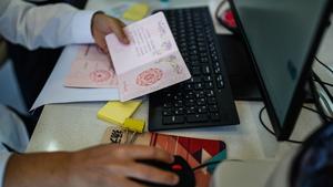 (250929) -- ZHENFENG, 29 septiembre, 2025 (Xinhua) -- Imagen del 28 de septiembre de 2025 de un empleado elaborando certificados de matrimonio para una pareja en una estación de servicio de registro matrimonial cerca del Puente del Gran Cañón de Huajiang, en el distrito de Zhenfeng, en la provincia de Guizhou, en el suroeste de China. El Puente sobre el Gran Cañón de Huajiang, el puente más alto del mundo abrió al tráfico la mañana del domingo, en la provincia de Guizhou, en el suroeste de China reduciendo el tiempo de viaje a través de un profundo cañón de dos horas a solo dos minutos después de tres años de construcción. (Xinhua/Tao Liang) (rtg) (ah) (vf)
