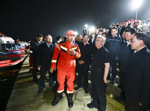 (250505) — GUIYANG, 5 mayo, 2025 (Xinhua) — El vice primer ministro chino, Zhang Guoqing, también miembro del Buró Político del Comité Central del Partido Comunista de China (PCCh), escucha sobre las operaciones de búsqueda y rescate en sitio después de un accidente en el que barcos zozobraron, en la ciudad de Qianxi de Bijie, en la provincia de Guizhou, en el suroeste de China, el 5 de mayo de 2025. Siguiendo las instrucciones del secretario general del Comité Central del PCCh, Xi Jinping, y la solicitud del primer ministro chino, Li Qiang, Zhang encabezó un equipo que viajó al sitio del percance el 4 de mayo para guiar el trabajo de rescate y socorro. (Xinhua/Yan Yan) (rtg) (ah) (ce)