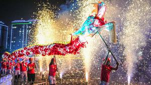 CHINA-GUIZHOU-TAIJIANG-FESTIVAL DE LAS LINTERNAS-FUEGOS ARTIFICIALES-DANZA DEL DRAGON