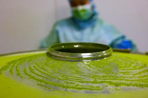 (250423) -- GUIZHOU, 23 abril, 2025 (Xinhua) -- Imagen del 14 de abril de 2025 de un trabajador produciendo matcha en un parque industrial de té, en el distrito de Jiangkou de Tongren, en la provincia de Guizhou, en el suroeste de China. Ubicado al pie del monte Fanjing, un sitio del Patrimonio Mundial de la UNESCO, el distrito de Jiangkou es una potencia en la industria mundial de matcha. El distrito cuenta con más de 10.000 hectáreas de plantaciones de té, casi una quinta parte de las cuales se dedica a la producción de matcha. (Xinhua/Ou Dongqu) (jg) (da) (ce)