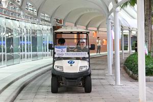 (260327) -- BOAO, 27 marzo, 2026 (Xinhua) -- Imagen del 26 de marzo de 2026 de una trabajadora conduciendo un vehículo de nueva energía para transportar a los periodistas en el centro de medios de comunicación de la Conferencia Anual 2026 del Foro de Boao para Asia (FBA), en Boao, en la provincia de Hainan, en el sur de China. Desde que se estableció el FBA hace 25 años, el concepto de operaciones verdes ha sido un principio fundamental de sus conferencias anuales. (Xinhua/Pu Xiaoxu) (jg) (da) (vf)