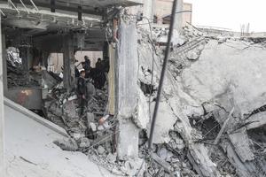 (250413) -- GAZA, 13 abril, 2025 (Xinhua) -- Imagen del 12 de abril de 2025 de palestinos vistos entre los escombros de un edificio destruido después de un ataque aéreo israelí, en el campamento de refugiados de Jabalia, en el norte de la Franja de Gaza. Al menos 1.563 palestinos han perdido la vida y 4.004 más han resultado heridos desde que Israel reanudó sus intensos bombardeos en la Franja de Gaza el 18 de marzo, señalaron el sábado las autoridades de salud de Gaza. (Xinhua/Mahmoud Zaki) (rtg) (da)