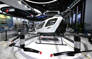 (250416) -- HAIKOU, 16 abril, 2025 (Xinhua) -- Imagen del 14 de abril de 2025 de un dron que transporta pasajeros en el stand de EHang en la V Exposición Internacional de Productos de Consumo de China (CICPE, por sus siglas en inglés), en Haikou, en la provincia de Hainan, en el sur de China. Desde habilidades de patrimonio cultural inmaterial hasta productos tecnológicos de moda, las marcas chinas mostraron su encanto en la CICPE en curso en Haikou, atrayendo la atención de muchos visitantes. (Xinhua/Pu Xiaoxu) (ah) (ra) (vf)
