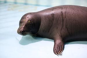 (250909) — LINGSHUI, 9 septiembre, 2025 (Xinhua) — Imagen del 8 de septiembre de 2025 de la foca Anong vista en el Centro de Conservación y Rescate del Océano Azul, en Lingshui, en la provincia de Hainan, en el sur de China. Una foca llamada Anong, conocida por interactuar con los pescadores locales en una playa sin urbanizar del poblado de Dongjiao, en la ciudad de Wenchang, en la provincia de Hainan, fue trasladada a un centro de conservación de fauna acuática en Lingshui para su protección y su regreso a su hábitat en el futuro. (Xinhua/Zhang Liyun) (oa) (ah) (vf)
