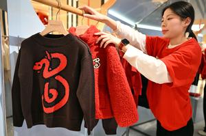 (250128) -- HAIKOU, 28 enero, 2025 (Xinhua) -- Imagen del 31 de diciembre de 2024 de una vendedora arreglando ropa con temática de serpientes en el Complejo Comercial Internacional Libre de Impuestos de Haikou, en Haikou, en la provincia de Hainan, en el sur de China. Los compradores acuden en masa a la provincia insular atraídos por los productos temáticos del Año Nuevo chino de las principales marcas internacionales, uno de los principales atractivos de la temporada de la Fiesta de la Primavera de este año. Este año será el Año de la Serpiente. (Xinhua/Guo Cheng) (oa) (ah) (vf)
